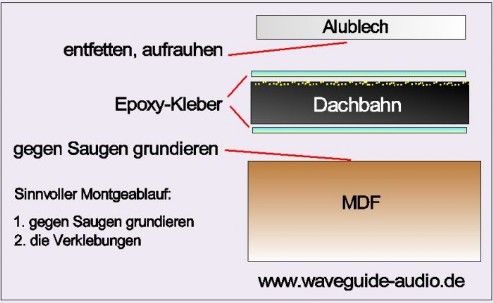 Da dieser Kleber zumindest auf einer Seite einen saugenden Untergrund braucht (sonst trocknet er nur im Randbereich aber innen nie...) darf die Deckschicht also nicht aus Aluminium bestehen. (Sondern muss aus irgendwas aus Holz bestehen).