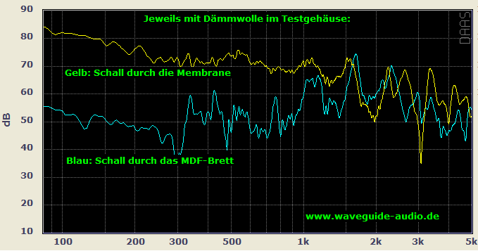 2) Schall durch ein Verschlussbrett aus 19mm MDF anstelle der Membrane